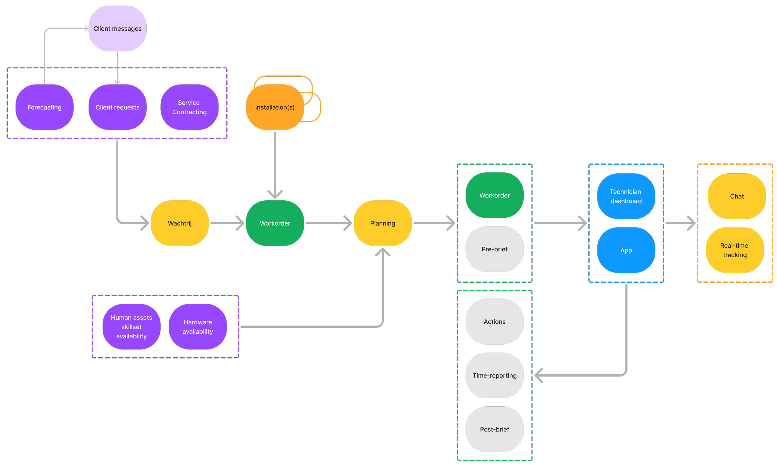 De digitale werkbon vormt de rode draad doorheen het werkproces van een installateur. Schema’s als deze zijn essentieel om samen met het productteam strategische keuzes te maken.